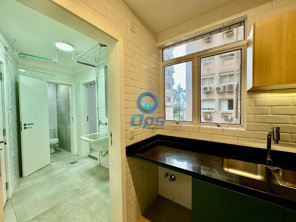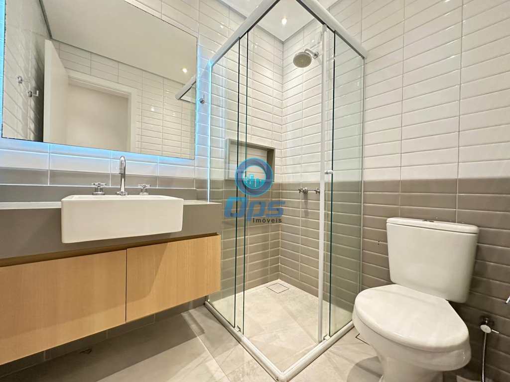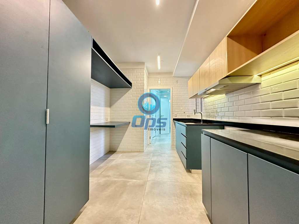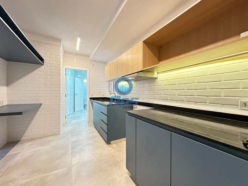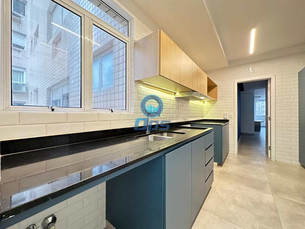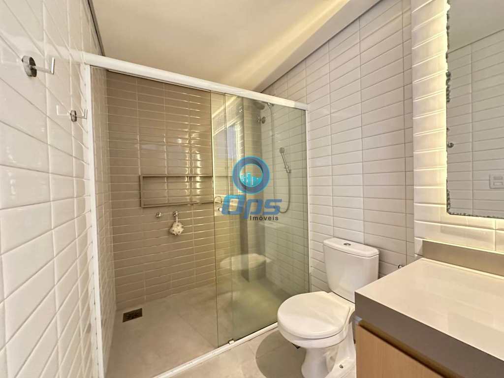 A cozinha planejada, também com vista para o mar, é um sonho para quem gosta de cozinhar. Conta com pia em granito, cuba dupla em inox e armários novos, oferecendo praticidade e sofisticação. Os banheiros seguem o mesmo padrão de qualidade, com armários embutidos e acabamentos de primeira linha.