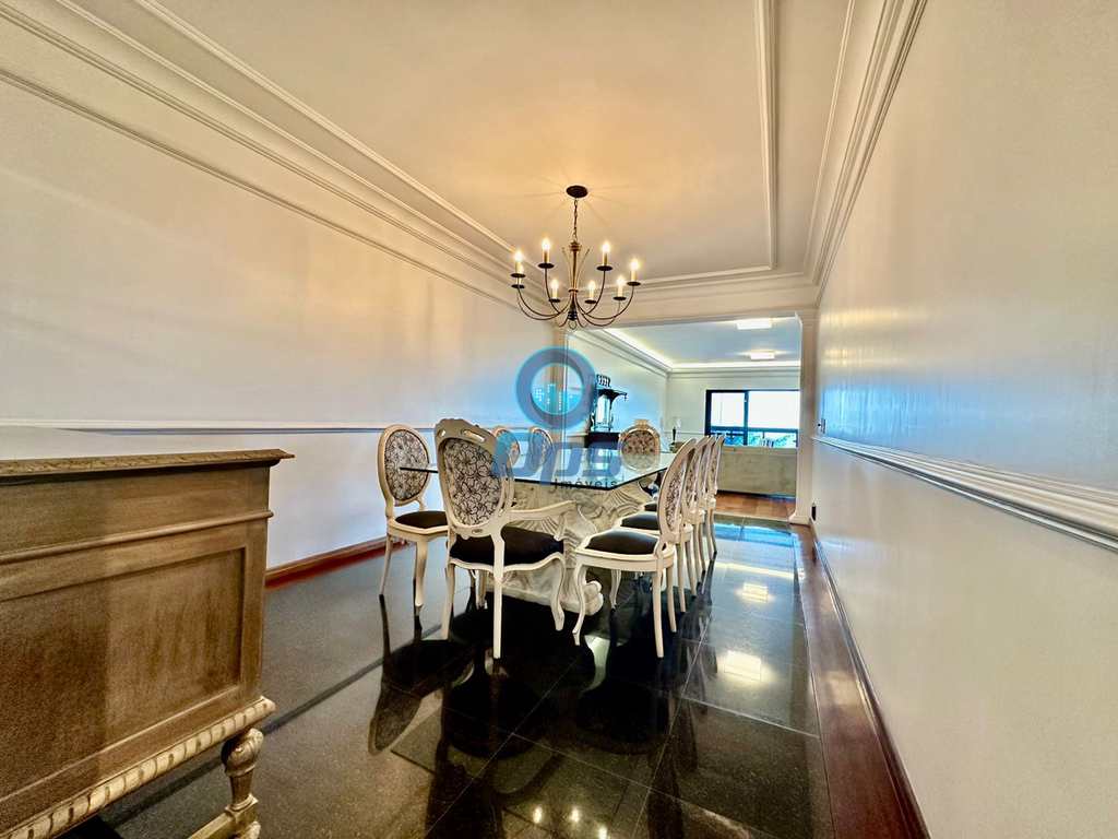 De frente, com uma vista incrível para o mar, o imóvel conta com **03 suítes espaçosas**, além de uma **sala ampla para 03 ambientes** integrada a uma generosa varanda de **14 m²**, perfeita para relaxar ou receber amigos. Há ainda um **lavabo** elegante e **02 despensas grandes**, garantindo praticidade no dia a dia.